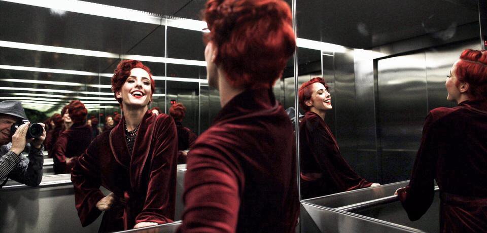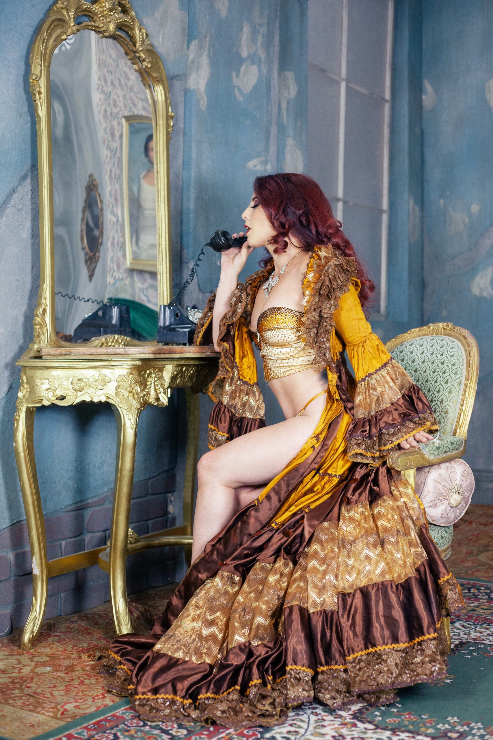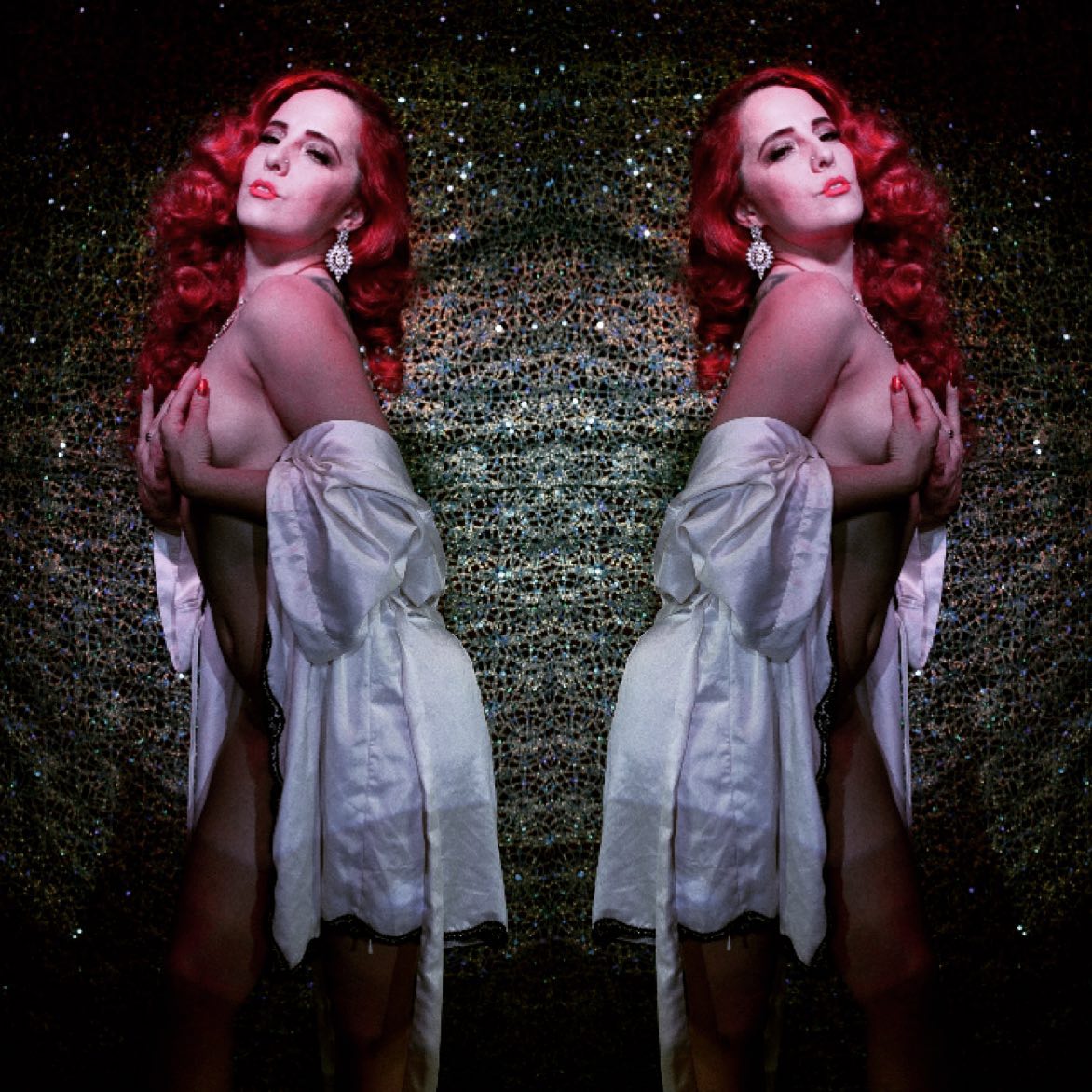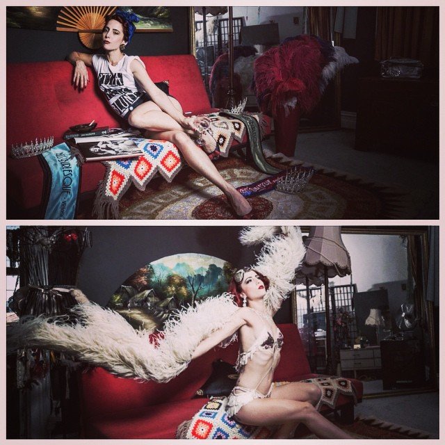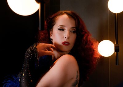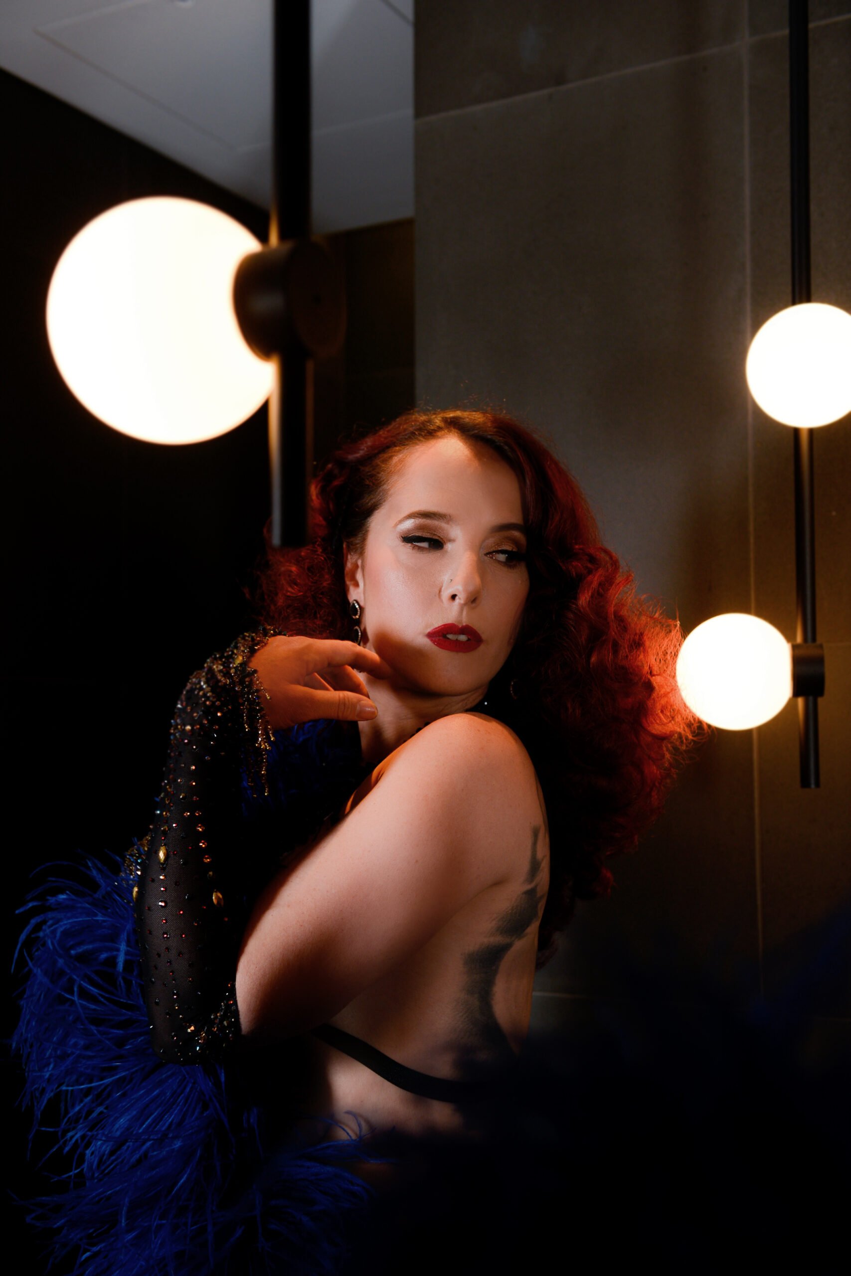Sydney Burlesque Dancer Kelly Ann Doll in front of a Mirror