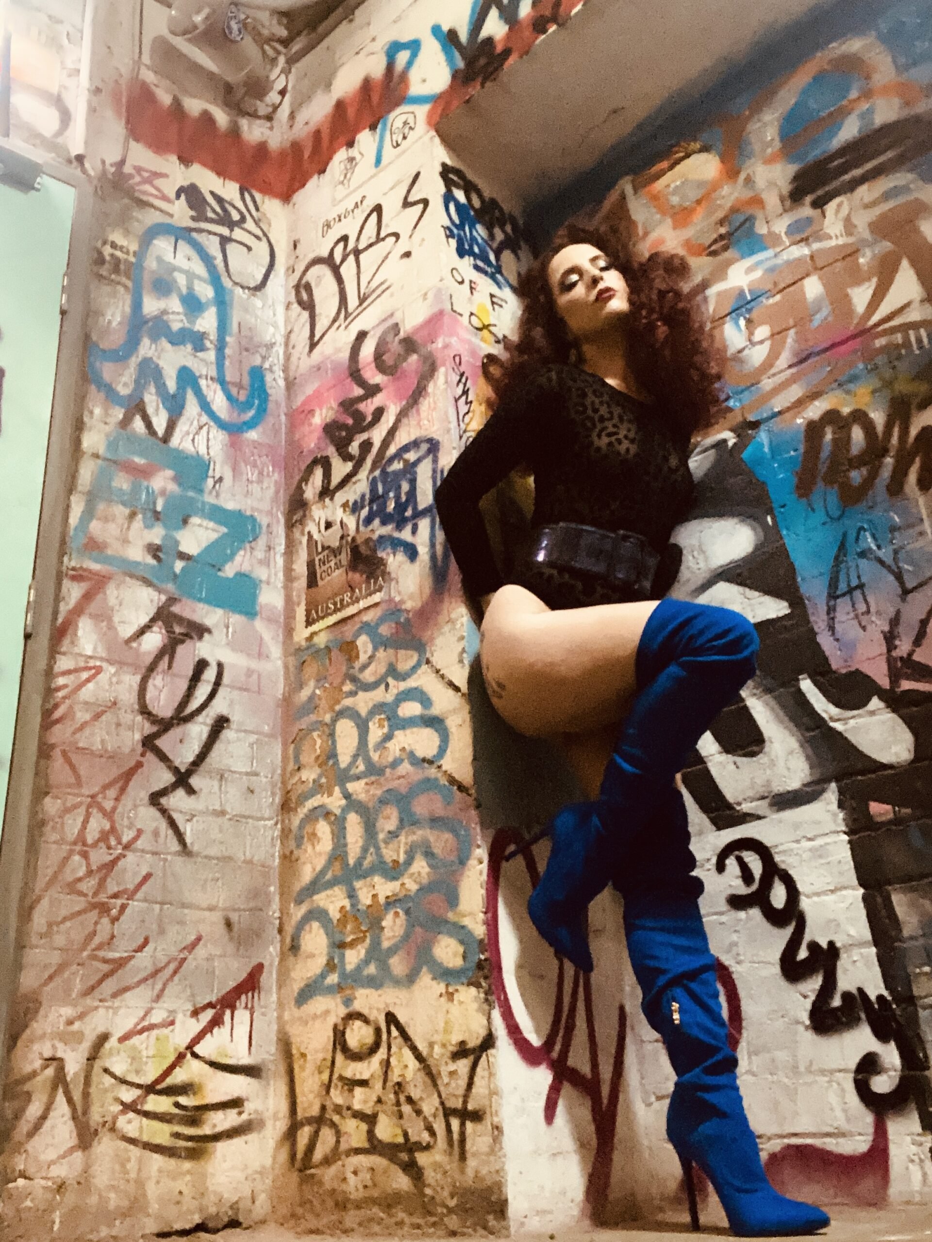 location shot of Sydney Burlesque Dancer Kelly Ann Doll